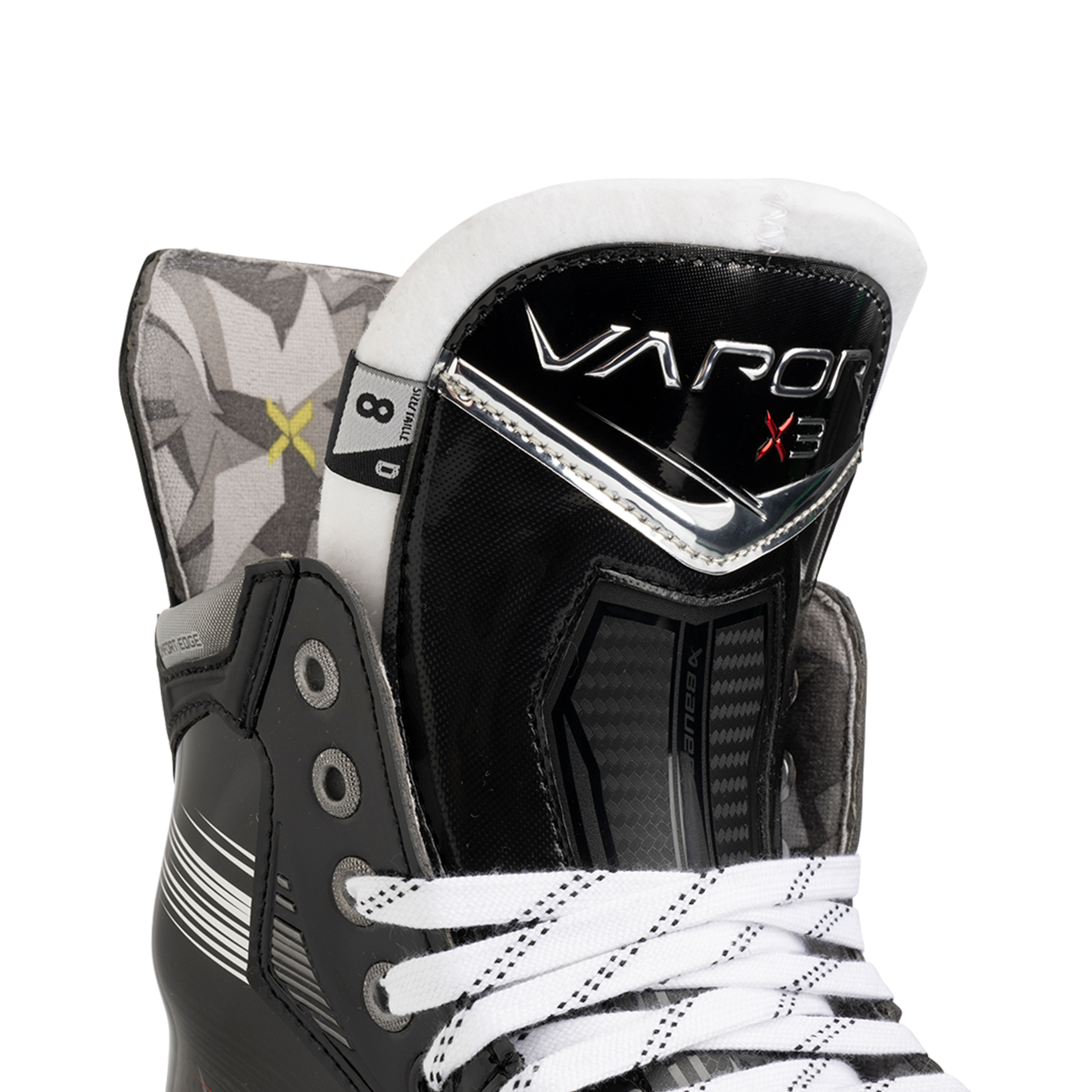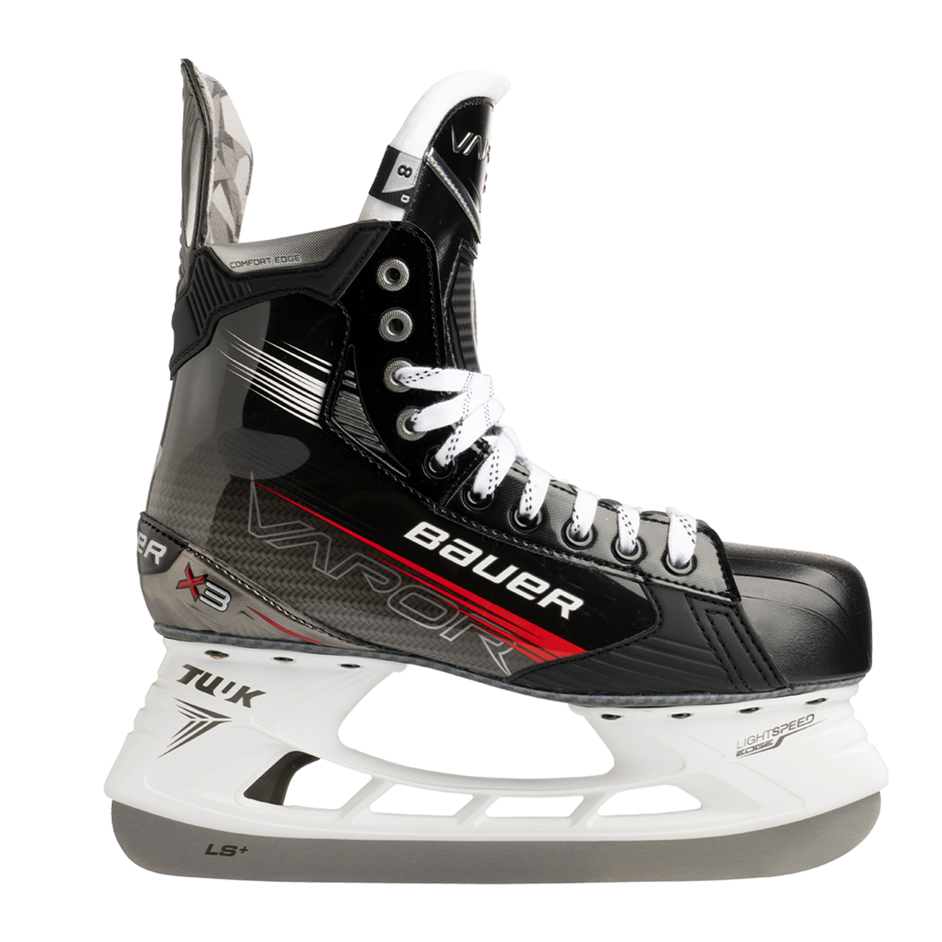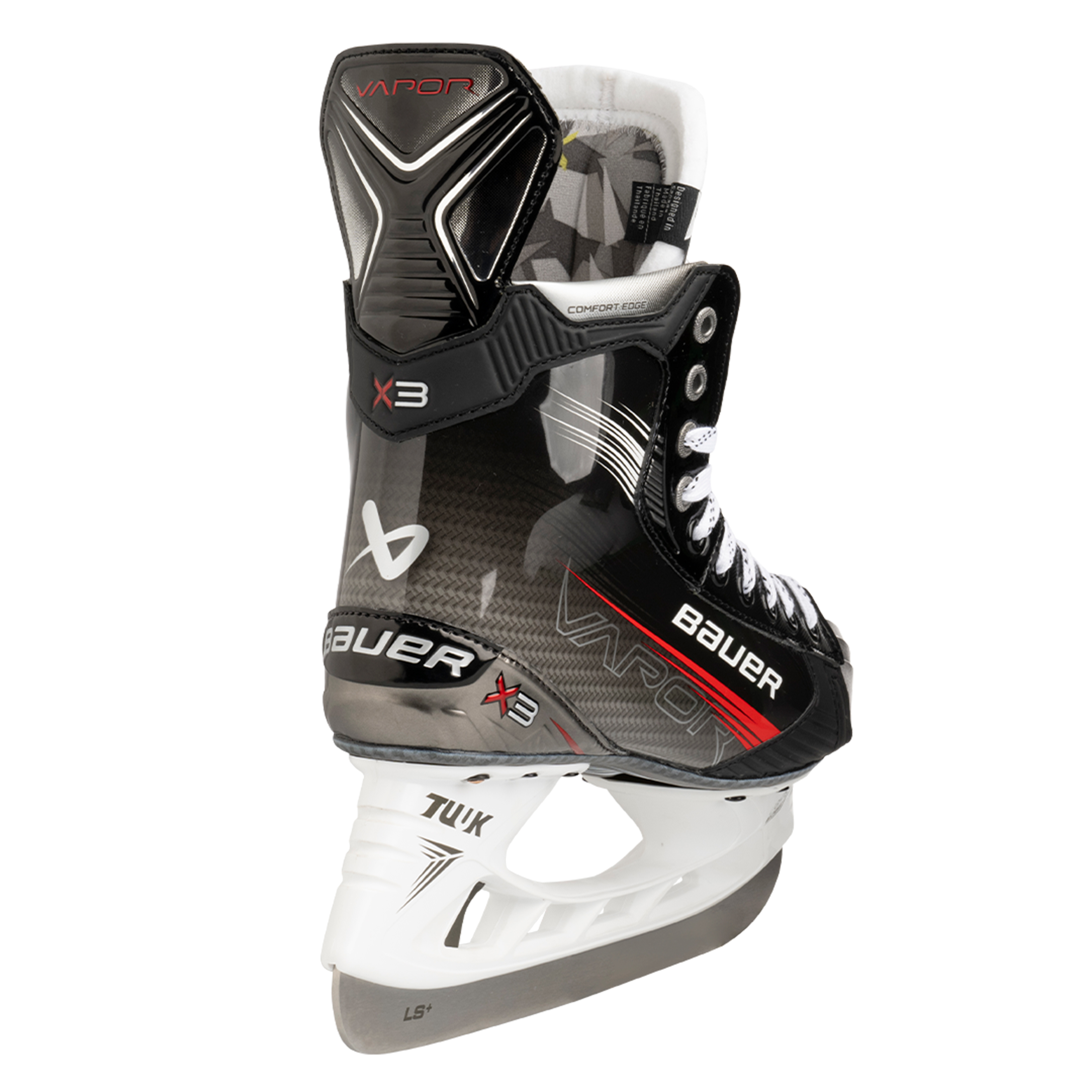 Модель VAPOR Х3 также получила удобную кромку, обеспечивающую мягкое взаимодействие между верхней частью лодыжки и ботинком, а стальное лезвие LS PLUS отличается повышенным качеством и увеличенной высотой, что позволяет совершать повороты с более резким радиусом и даёт возможность профилировать коньки в течение более длительного периода эксплуатации.