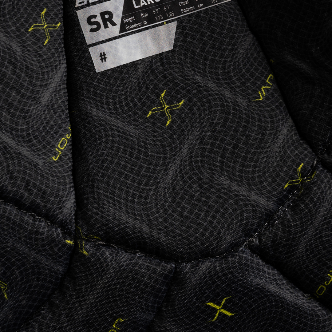Измененная конструкция защиты ребер облегает ваше тело, удерживая нагрудник на месте с момента начала игры и до финального свистка.